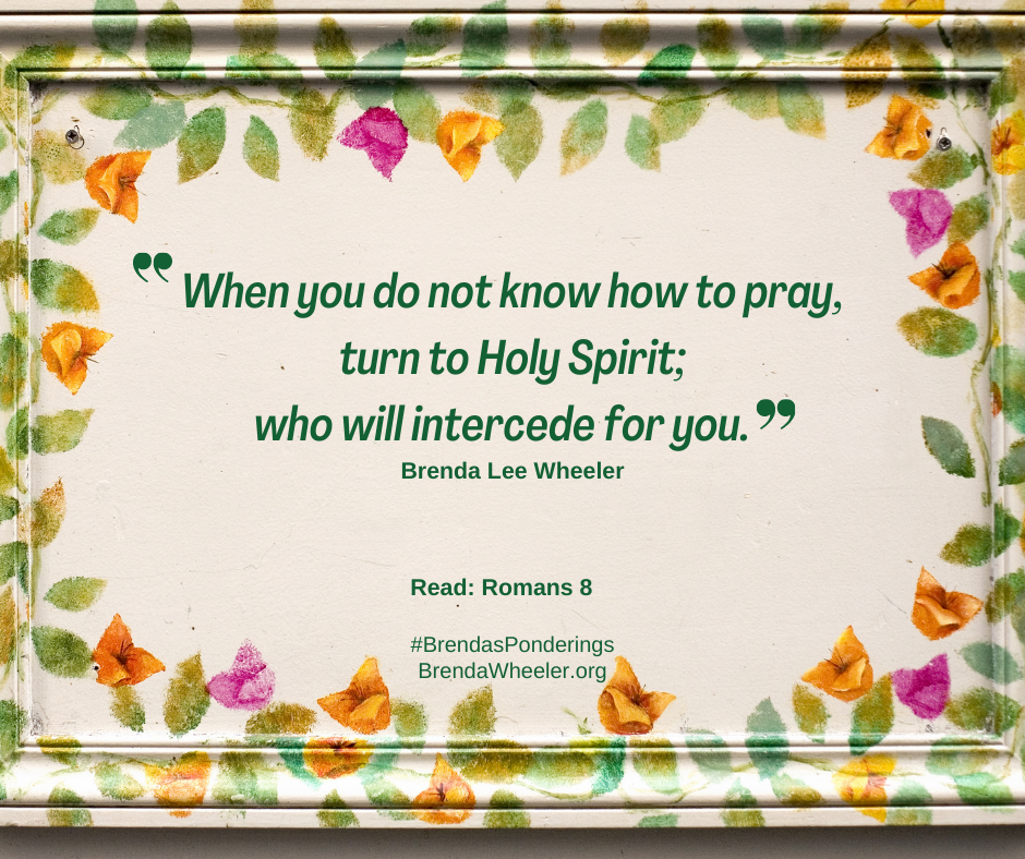 Sometimes we still need Holy Spirit to intercede on our behalf; and he does it willingly! Let’s look at Romans 8.1 Paul is speaking to the “Christian church in Rome”.2 In the first half of Romans 8, Paul is encouraging the Christians by telling them that although their bodies are made of flesh, they themselves are IN the Spirit. That is to say, we “are not in the flesh but {we are} in the Spirit, if indeed the Spirit of God dwells in” (v9)1 us. And, because the Spirit dwells within each one of us, as Christians, we are not to fear. In the times we are week, unsure, tired, fretting, and such, we have been provided an advocate, namely, Holy Spirit. As we move down past mid-chapter of Romans 8, we are encouraged with Paul’s message that “the Spirit also helps our weakness; for we do not know what to pray for as we should, but the Spirit himself intercedes for us” v26.1 As we turn to the Spirit, simply invite him to be present to you. Pray something like: “Come, Holy Spirit, Come”, or “Holy Spirit, I welcome your presence”. Then, be in silence, allowing Spirit to intercede for you. You may also pray something like: “Holy Spirit, how do you want me to pray?”. You may actually discover that you may begin praying on your own after a few seconds or minutes.